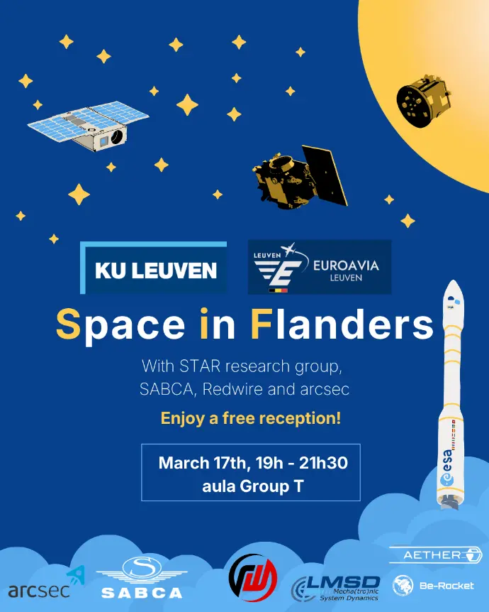 Curious about the aerospace sector in Flanders and cutting-edge research at KU Leuven? Join us for Space in Flanders, an inspiring evening featuring researchers, industry experts, and student teams!