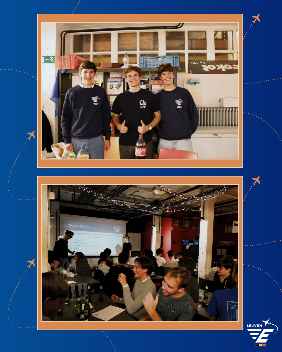 15 teams kwamen bijeen om hun kennis van de lucht- en ruimtevaart te tonen. De avond was gevuld met gelach, drankjes, gratis kippenvleugels en onion rings. Volgens de traditie moest elk team zijn eigen papieren vliegtuigje vouwen en zo ver mogelijk lanceren. Niet elk vliegtuigje was even succesvol, wat resulteerde in hilarische momenten. 🛩️