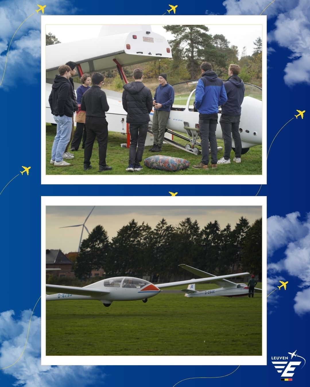 At the Zwartberg airfield in Genk, 6 of our members had the unique opportunity to experience the thrill of gliding and gain firsthand insight into the world of aviation. The day commenced with the assembly of the gliders, followed by a thorough briefing on aircraft controls and safety procedures. 🪂